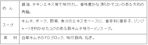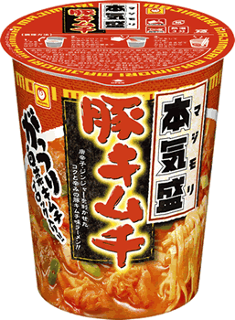 ボリューム感を追求し、たっぷり食べたいというニーズに対応した、満足感のあるカップ麺としてご好評頂いております『本気盛(マジモリ)』。この度の商品は、シャキシャキ感のある白菜キムチをふんだんに使用したFDブロックと、スープには唐辛子・ジンジャーを利かせたコクと辛みの豚キムチ味ラーメンです。『本気盛(マジモリ)』のメインターゲットであるヤング層に合うど真ん中のフレーバーで、縦型市場の活性化を狙います。