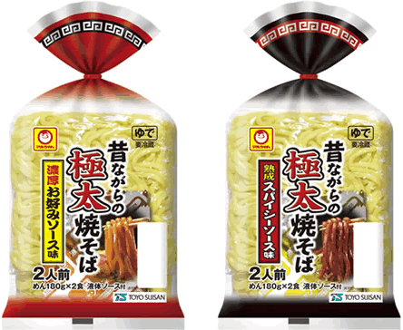 東洋水産株式会社(本社:東京、社長:小畑 一雄)では、「マルちゃん 昔ながらの極太焼そば 濃厚お好みソース味 2人前」「同 熟成スパイシーソース味 2人前」を2014年2月17日(月)より、近畿以東にて新発売致します。
