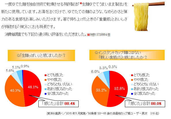 1.「生麺ゆでてうまいまま製法」による革新的な麺!