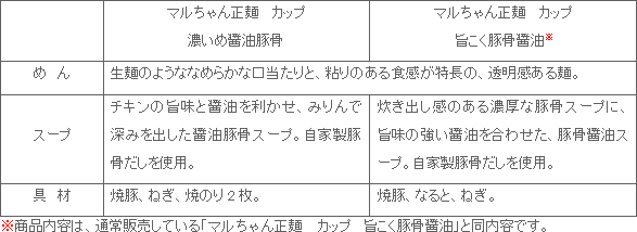 「マルちゃん正麺 カップ 濃いめ醤油豚骨」 新発売、「同 旨こく豚骨醤油」 期間限定パッケージで発売のお知らせ