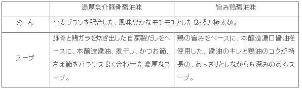 新商品の「旨み鶏醤油味」は、鶏の旨みをベースに、醤油のキレと鶏油のコクのあるスープが特長です。