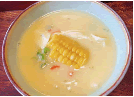福島県を代表する地鶏「伊達鶏」を使用したスープです。伊達鶏の挽肉をゆっくりと煮出して取った、旨みが豊富な極上な鶏だしに、とうもろこしの甘みをマッチさせ、おいしいスープに仕上げました。たまごを白身と黄身に分けて入れ、食感も増し、滋味深い栄養豊富な逸品になりました。味付けは、子どもからお年寄りまで、幅広い人がおいしいと言ってくれる味に仕上げました。作品名は、鶏とたまごで親子と、親子で仲良く食べてもらいたいと願い込め、ネーミングしました。