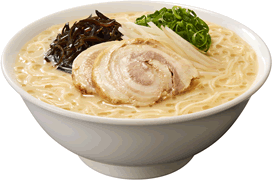 まろやかで口当たりが良く、アクセントににんにくを利かせた、甘旨い香りが特徴の味わい深い濃厚なコクのある豚骨スープ。 |