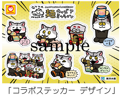 パッケージやコラボステッカーに使用されているイラストは、イラスト作家「高橋きの」先生による描き下ろしデザインです。商品パッケージは、「MARUCHAN QTTA」の公式キャラクター「クッタくん」と「MAN WITH A MISSION」メンバーのキャラクターがコラボした可愛らしいデザインになっております。コラボステッカーは、メンバーのキャラクターとクッタくんが入ったオリジナルデザインとなっております。