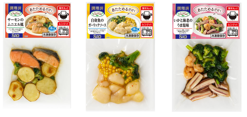 「ChoiFish 白身魚のガーリックソース」「同 サーモンのムニエル風」「同 いかと海老のうま塩味」新発売のお知らせ