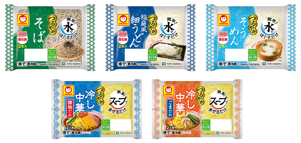 東洋水産株式会社(本社:東京、社長:住本 憲隆)では、2026年3月1日(日)より全国にてチルド麺「マルちゃん つるやか そば 2食入」「同 稲庭風細うどん 2食入」「同 そうめん 2食入」「同 冷し中華 醤油だれ 2人前」をリニューアル発売し、「同 冷し中華 ごまだれ 2人前」を新発売いたします。