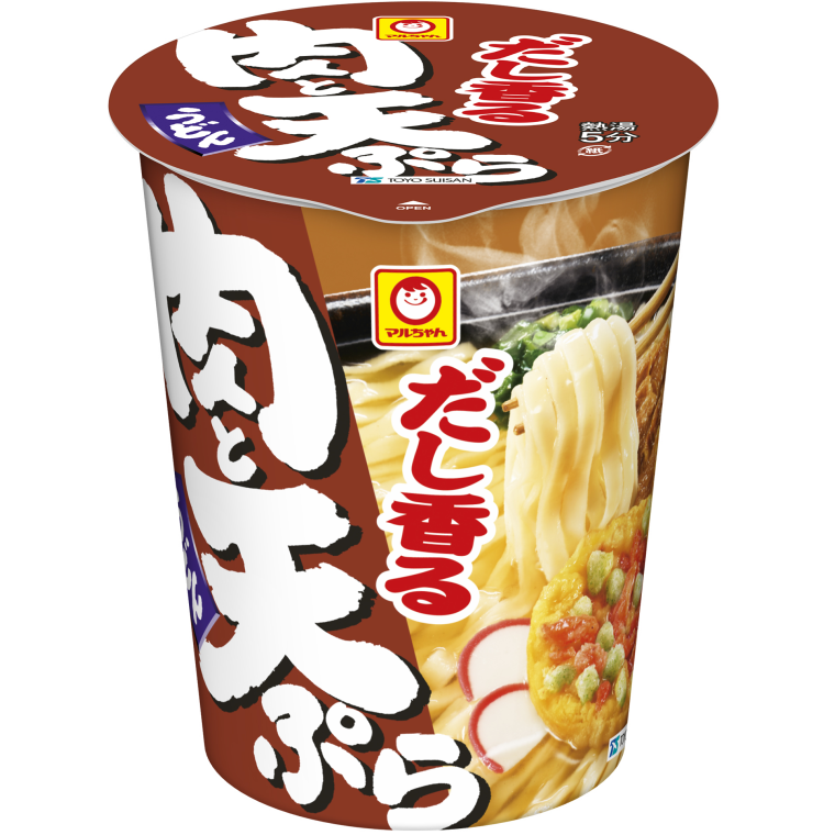 油揚げめん(小麦粉(国内製造)、植物油脂、食塩、乾燥酵母、植物性たん白、卵白)、添付調味料(食塩、砂糖、乳糖、しょうゆ、粉末さばぶし、こんぶエキス、たん白加水分解物、植物油、ビーフエキス、粉末煮干し、しいたけエキス)、かやく(小えびてんぷら、味付牛肉、かまぼこ、ねぎ)/加工でん粉、調味料(アミノ酸等)、トレハロース、リン酸塩(Na)、炭酸カルシウム、レシチン、カラメル色素、酸化防止剤(ビタミンE)、増粘剤(グァーガム)、クチナシ色素、ベニコウジ色素、ビタミンB2、ビタミンB1、カロチン色素、(一部にえび・小麦・卵・乳成分・牛肉・さば・大豆・鶏肉・豚肉・ゼラチンを含む)