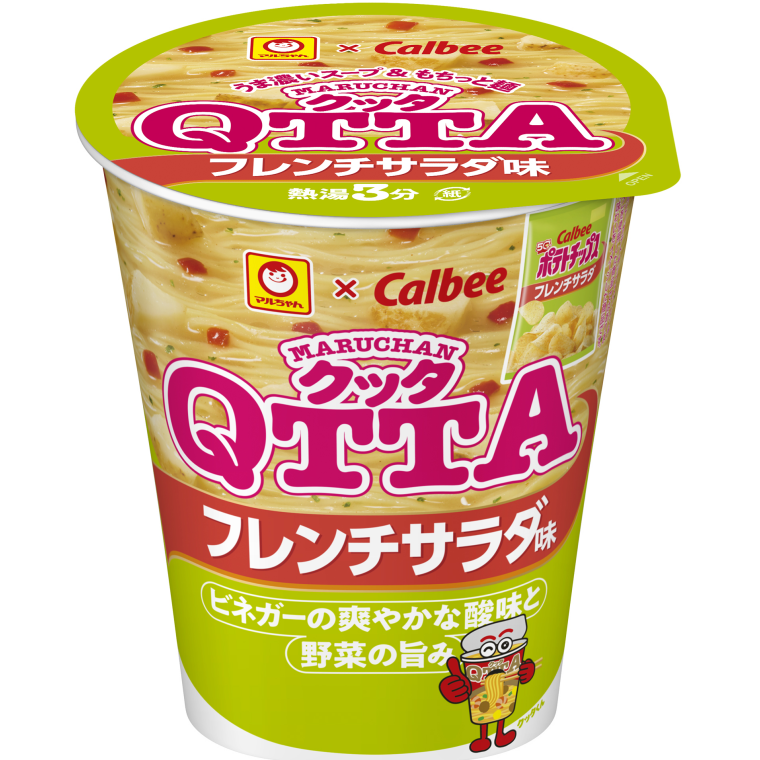 油揚げめん(小麦粉(国内製造)、植物油脂、精製ラード、でん粉、食塩、植物性たん白、砂糖、しょうゆ、チキンエキス、卵白)、添付調味料(粉末野菜、食塩、砂糖、乳等を主要原料とする食品、香辛料、醸造酢、酵母エキス、植物油、マヨネーズ風味調味料、パセリ)、かやく(ポテト、赤ピーマン)/加工でん粉、調味料(アミノ酸等)、炭酸カルシウム、増粘多糖類、かんすい、酸味料、クチナシ色素、酸化防止剤(ビタミンE)、香辛料抽出物、香料、ビタミンB2、ビタミンB1、(一部にえび・小麦・卵・乳成分・大豆・鶏肉・豚肉を含む)