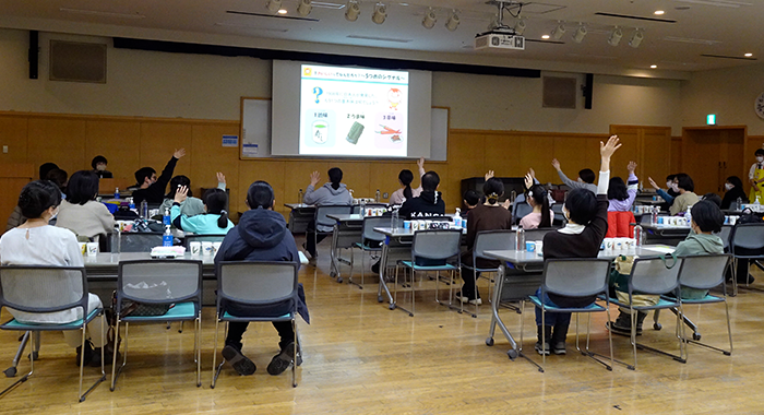 2023年3月4日(土)に札幌市生涯学習センター「ちえりあ」にて、同館が主催する市民講座の一つとして「だしの秘密」と題した食育プログラムを感染対策を行った上で実施しました。当日は、小学3年生~中学3年生の親子31組62名の方にご参加いただきました。